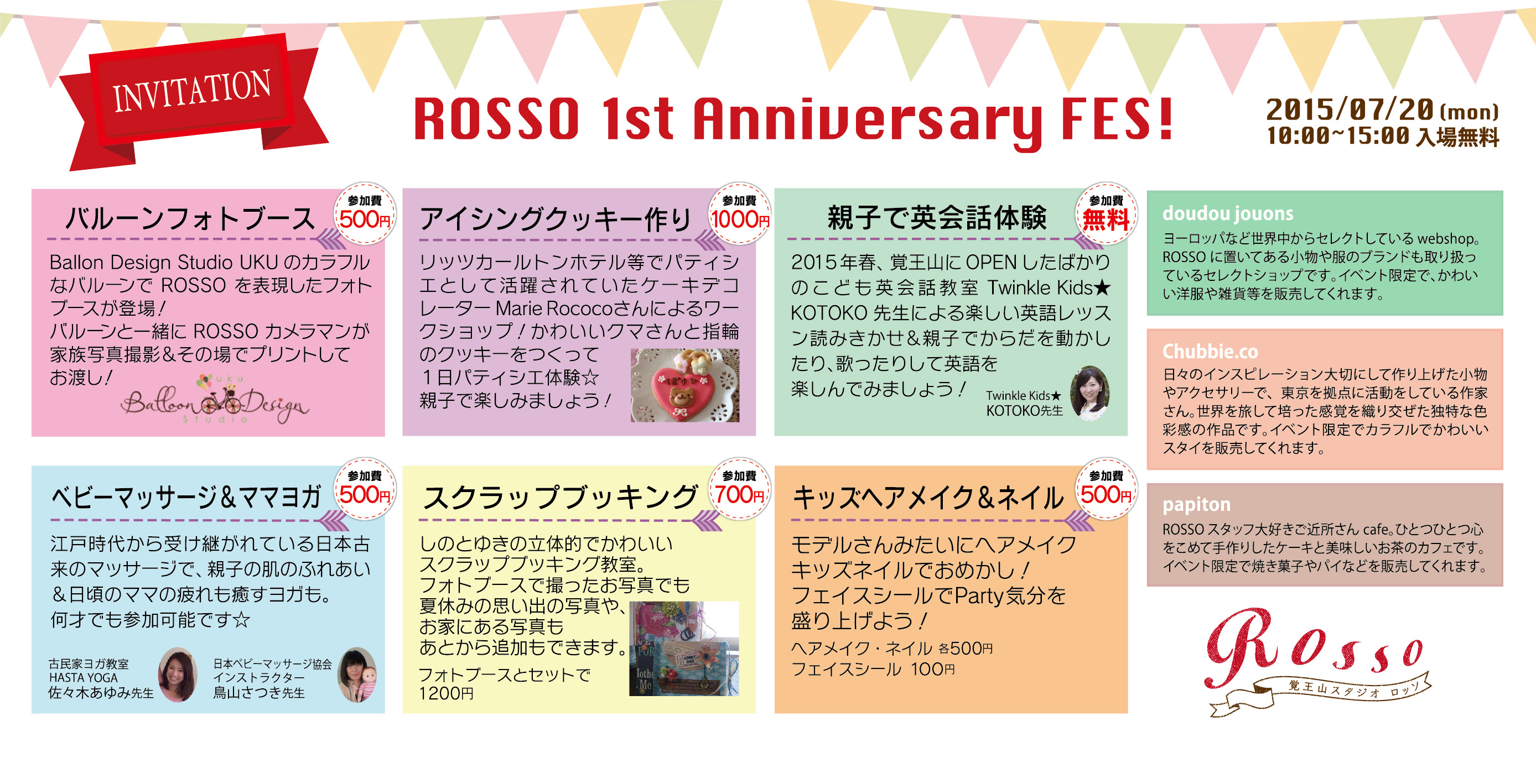 終了しました【2015年7月20日(月・祝)】ROSSO 1st Anniversary FES!!開催します(入場無料)